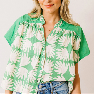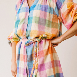 Short-Sleeve Cinch Waist Tabitha Midi Button-Up - Maya Palm Beach Stripe