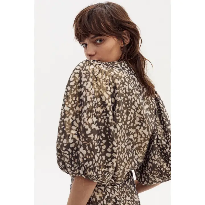 100% organic linen * Pre-washed and softened * Mandarin neckline * Elbow-length puffed sleeves * Front shell button closure * Made in Vietnam