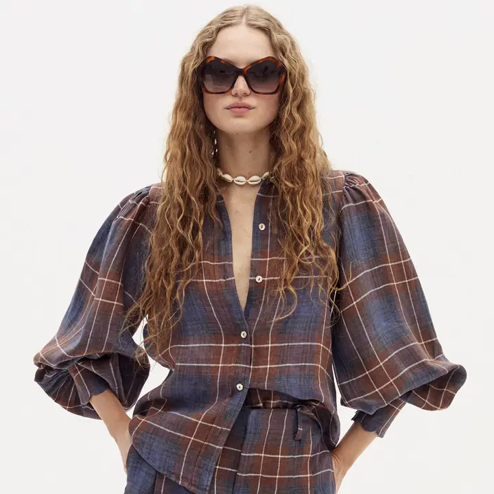 Camille Linen Shirt - Forest Checks