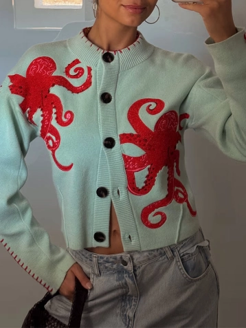 Coastal Chic Octopus Cardigan - Mint