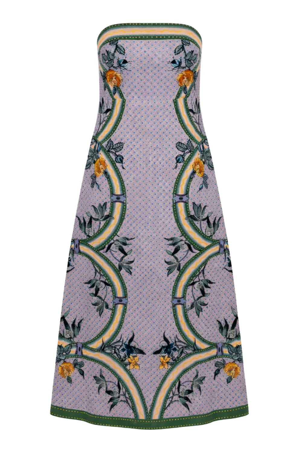 The Wess Midi is a strapless statement silhouette with an easy, flattering fit. Designed in a soft lilac-toned print with graphic contrast detailing, it features a smocked back for comfort and flexibility, balanced by a clean center back zipper. The midi-length skirt flows effortlessly, making it an elevated option for warm days and dressed-up evenings alike.