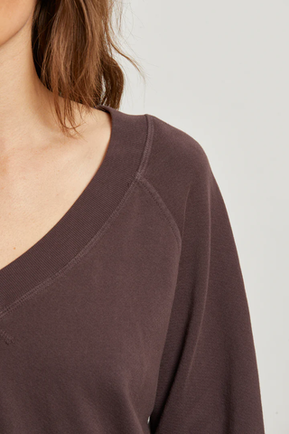 Hendrix - Crispy Lightweight Cotton Boxy V Neck Tee - Cocoa