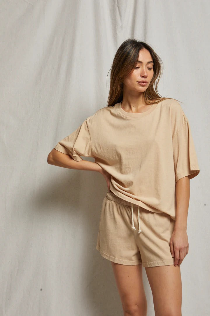 cut oversized in our soft supima cotton, the gloria tee is the epitome of effortless. drapey and easy, pair it over your hero broken in denim or back to the adia supima cotton short.