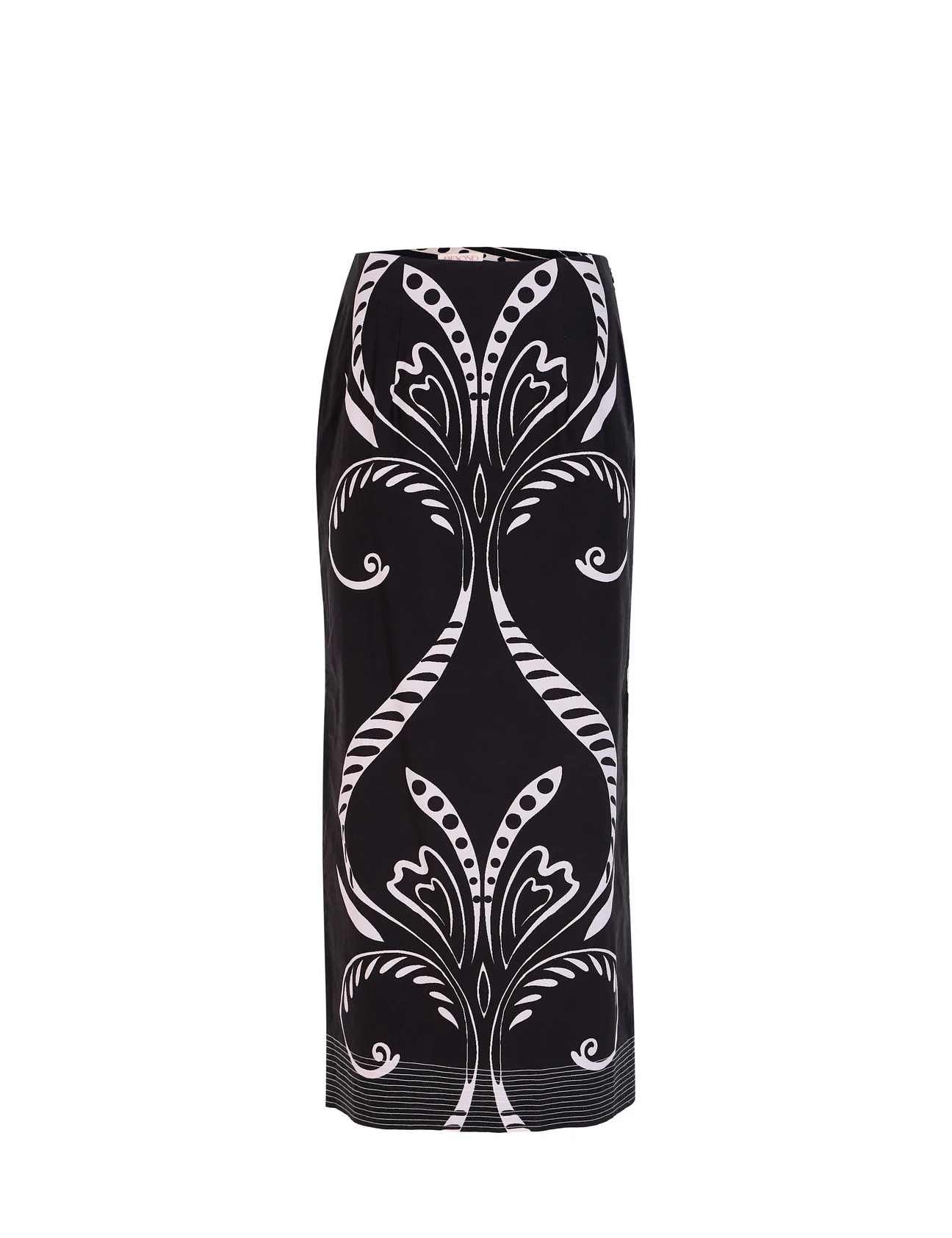Introducing the Aspen Skirt - a sleek and sophisticated design that flatters the figure with its fitted silhouette. The slender cut creates a streamlined look that's perfect for making a statement. Pair it with the Hudson Blouse for a chic, elegant ensemble or with a casual tee for a stylish, everyday look. The side slits provide a touch of movement and freedom, making it ideal for a night out or a busy day on the go. Aspen is crafted from crisp cotton poplin, breathable and soft against the skin ‘Fountain’ is a print artwork that draws from the pure, revitalizing waters of a serene river, capturing that sense of renewal and tranquility.