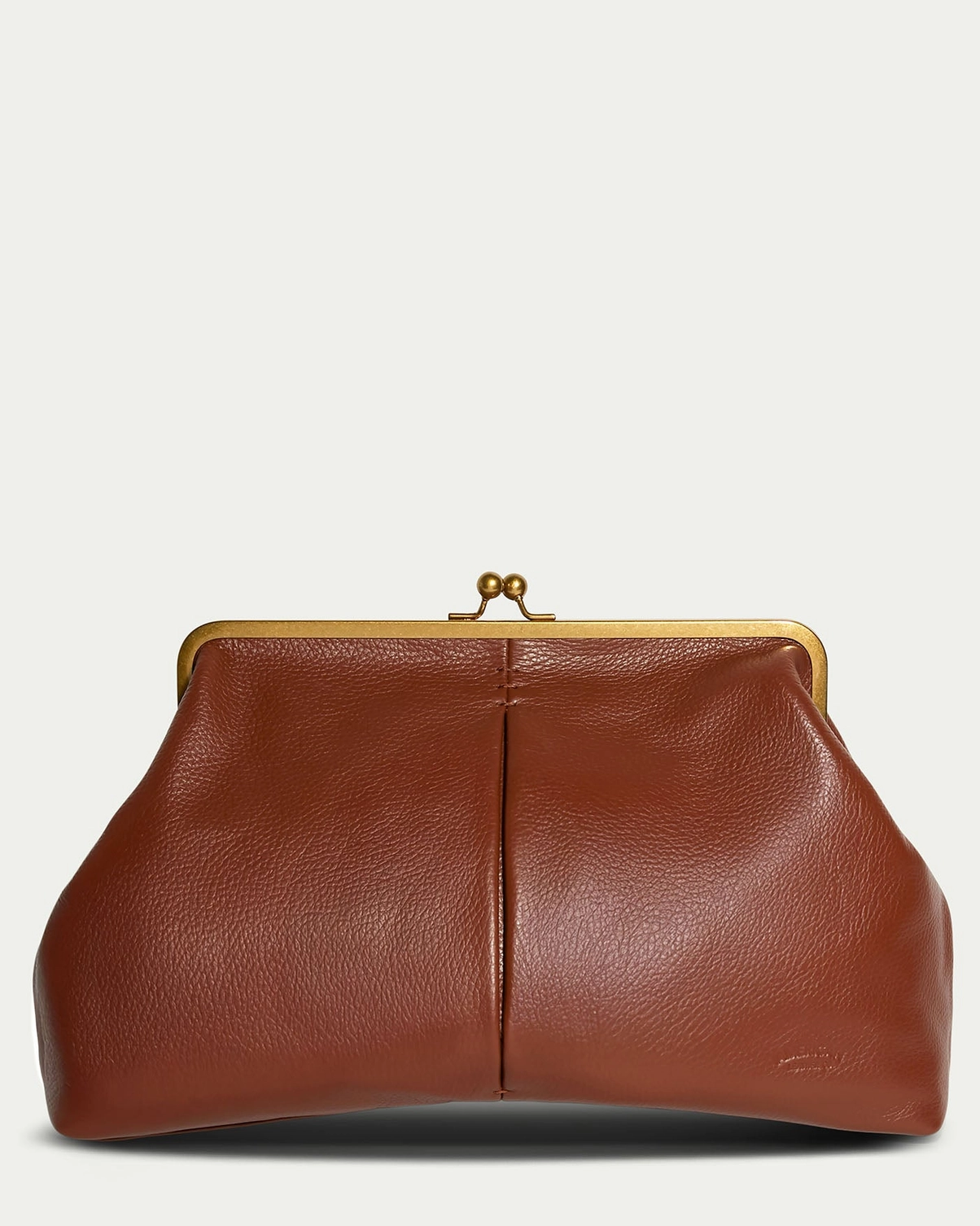 The Grace Oversized Clutch combines timeless sophistication with practical design. Crafted in our iconic leather, this spacious clutch features a vintage-inspired metal frame and clasp closure, perfect for carrying all your essentials in style. Whether for a night out or an elegant addition to your daytime look, the Grace Oversized Clutch is a statement of refined simplicity.    * 100% Genuine Leather   * Dimensions: 16"L x 5"H x 9.5"W   * Weight Approximately: 1.6 lbs