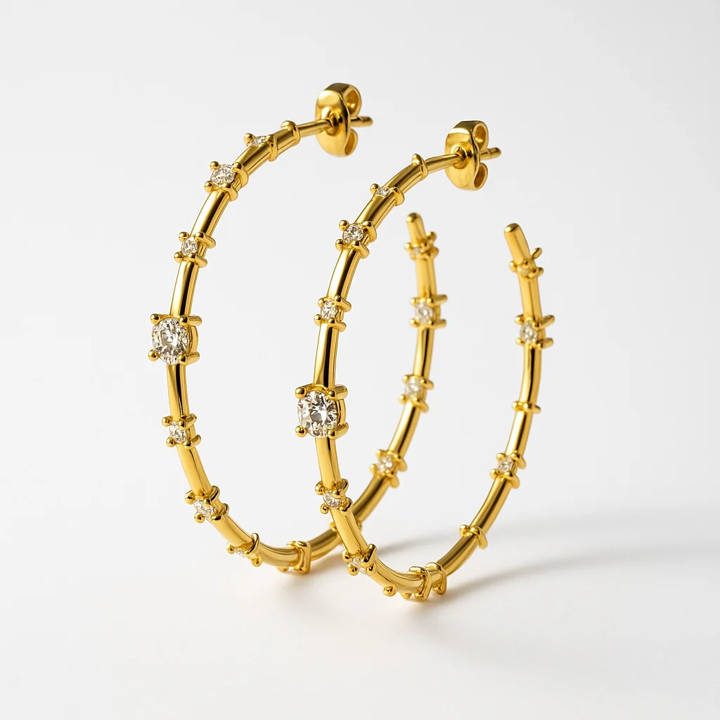 The Magic Hoops are 18K gold plated sterling silver with cubic zirconia stones for a sparkling and magical look. Hypoallergenic and nickel free.