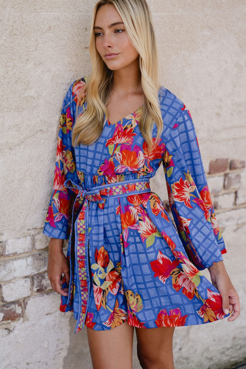 The Lucia Mini is a fun, flirty silhouette designed to stand out. Featuring a flattering V-neckline and long sleeves, this mini is finished with a gently gathered waist and a removable contrast sash belt that adds a pop of color and shape. The flowy skirt and bold print create effortless movement, making it perfect for everything from daytime outings to weekend plans.