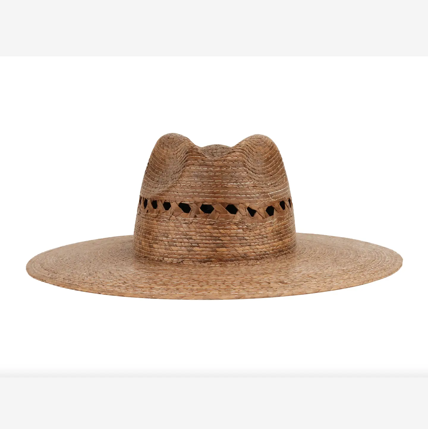 Meet the Maui hat is made of 100% palm leaf that is sealed to protect its body from humid environments. This classic design will surely stand the test of time. ASN Hats  A classic fedora crown, a bold wide brim, this handmade piece is designed to make a statement. Handmade with care and inspired by the grace of the island of Maui.  Please note that our straw hats are crafted from natural straw and handmade with care. Due to the natural materials and artisanal techniques used, each hat may vary slightly in color and texture, adding to its unique charm and character.   * 100% Palm leaf, natural color   * (One Size) 56-59 cm   * Inner elastic to help with fit   * Crown 4”   * Brim 13 cm   * Fedora top crown   * Embroidered trim   * Spot/special cleaning  FIT SCALE  True to size