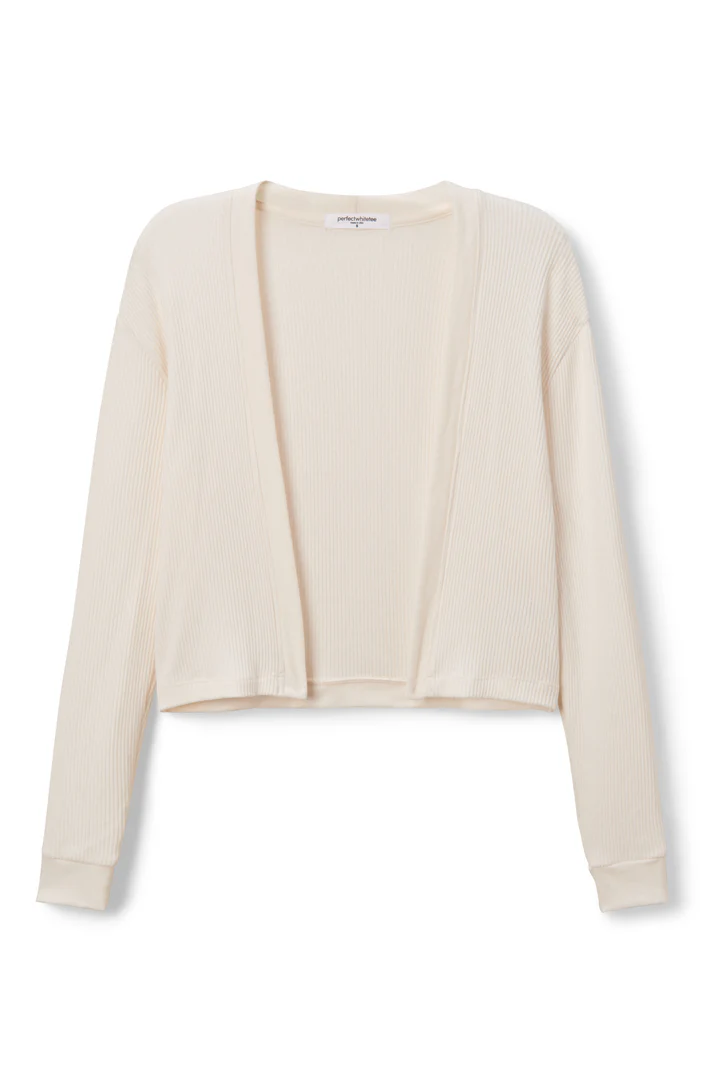 the kelsey cardigan is your no-fuss layering piece for in-between temps. buttonless, lightweight, and made from our soft sweater rib, she drapes just right whether worn over your shoulders or layered with any piece from the collection.