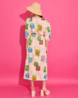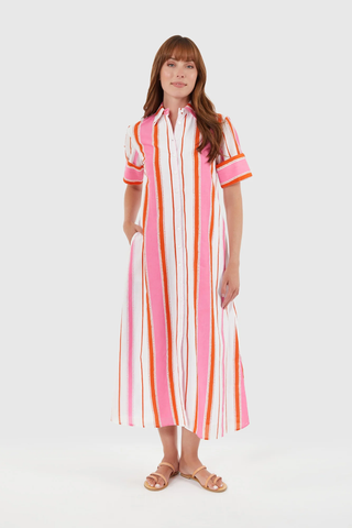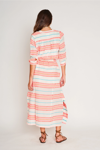 Alisha Trapeze Strappy Midi Dress - Ecru / Coral