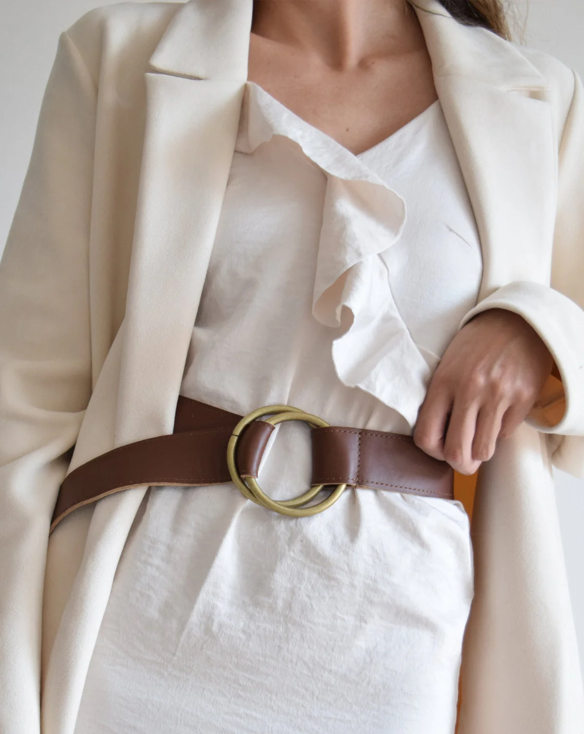 The perfect everyday belt detailed with stitching and a two ring closure makes this belt is easy to wear.