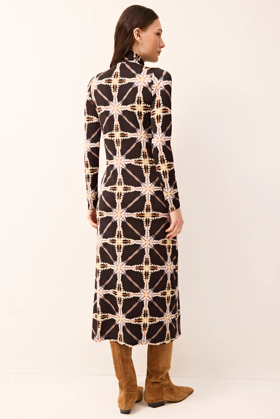 One of our Founder’s favorite seasonal silhouettes, this figure-skimming turtleneck dress features a soft jersey knit that underscores Paxton’s elegant lines. The slip-on style is pictured here in Polaris, a fashion take on tie-dye in a neutral winter color palette that captures the moody glamour of shifting temperatures. The perfect layer? Our Beatrice vest in Polar.