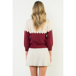 Licensed Georgia V Neck Striped Cuff LS Sweater With Small Mascot