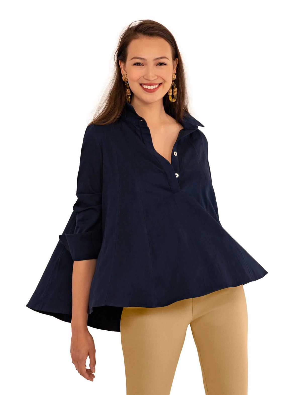 - High to Low Hemline - Front 24" / Back: 25" - Optional Turn-Back Cuffs - Shell Buttons Under Front Placket Fabric & Care - 100% Cotton - Machine Wash Cold / Cool Tumble Dry or Dry Clean