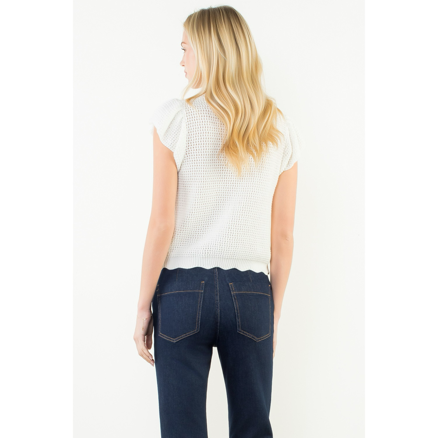 Style Measurements for Size S / Designed in USA - Body Length: 20 in - Bust Width: 37 in - Sleeve Length: 4 3/4 in . / Model Sizes - Wearing Size S - Height 5' 9", Bust 32", Waist 25 1/2", Hips 36" . / Fabric Content - KNIT / 43% Viscose, 32% Nylon, 25% Polyester
