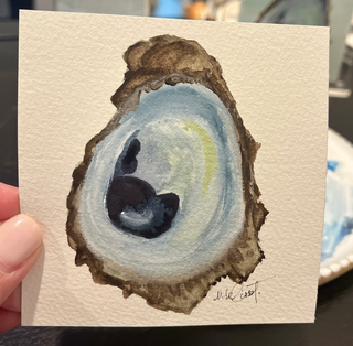 Original Watercolor Oyster Shell in Acrylic Block Frame, 5x5
