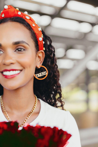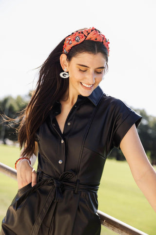 Brianna Cannon - Hot Pink Headband with Red Pave Crystal Hearts