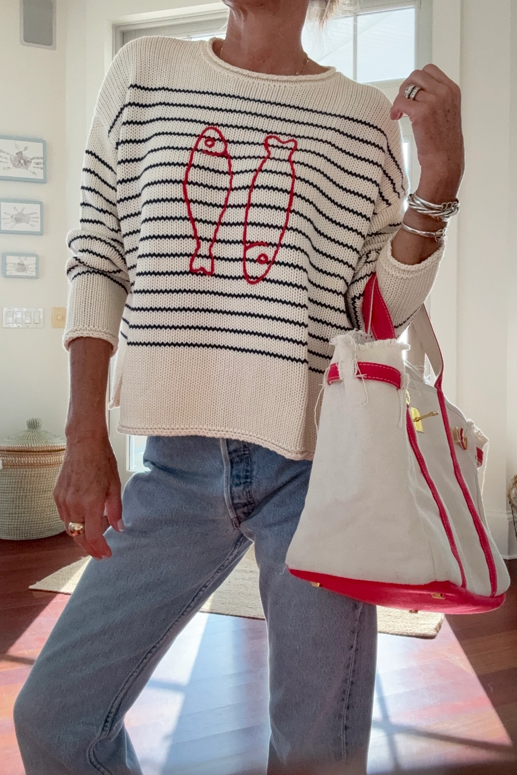 Chloe Stripe Embroidered Sardines Sweater - Ivory