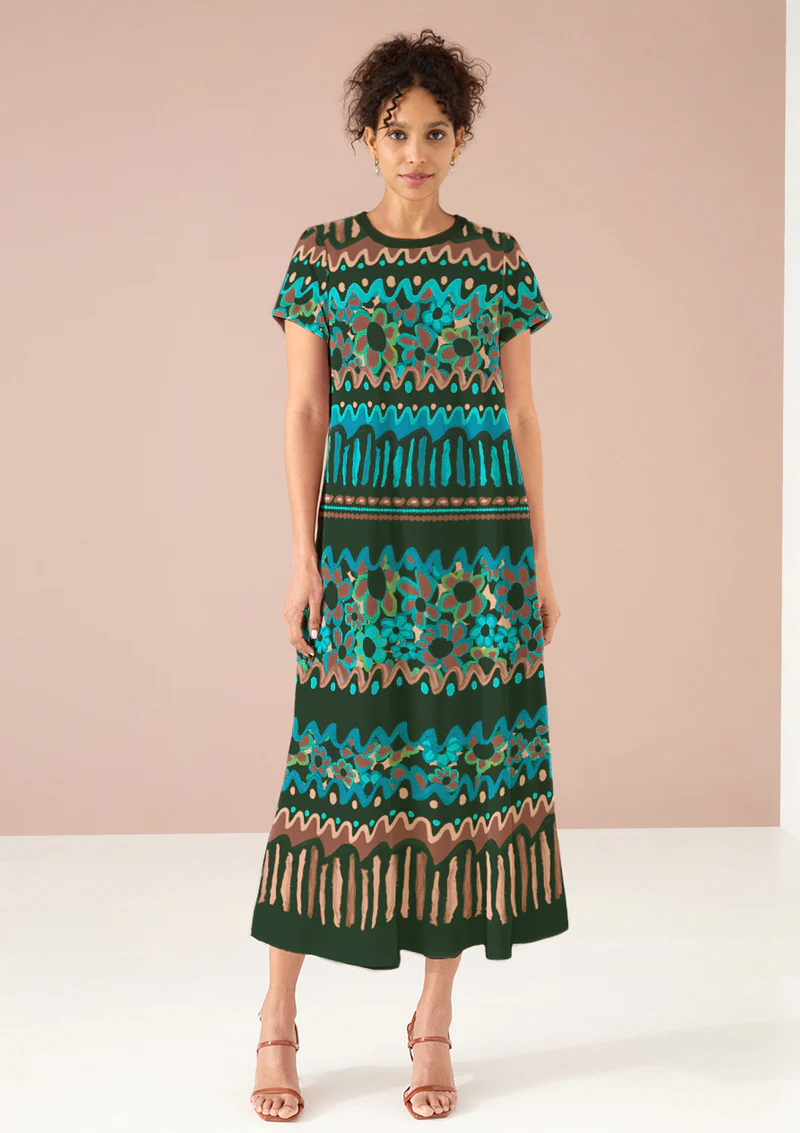 A vibrant t-shirt dress featuring the most beautiful floral print! The Charise Dress is designed to have a relaxed fit, and is maxi length. Dress up with booties or keep it casual with sneakers.