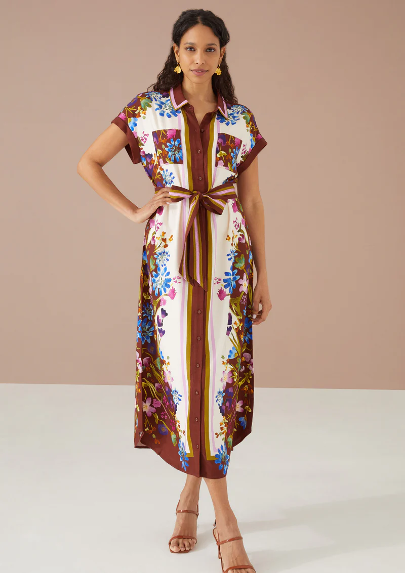 The Willa Dress is the perfect blend of classic and modern. The bold floral placement print adds a playful touch to the soft tencel twill fabric. Tie with the optional waistbelt for a more feminine fit.