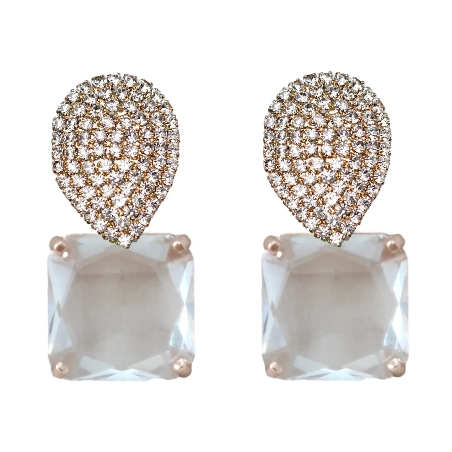 Timeless and glamorous, these retro holiday statement earrings feature a pave crystal teardrop top and a clear gum drop-inspired crystal drop. The clean sparkle pairs effortlessly with any outfit, making them a go-to for holiday parties, New Year’s Eve, or elegant winter events.