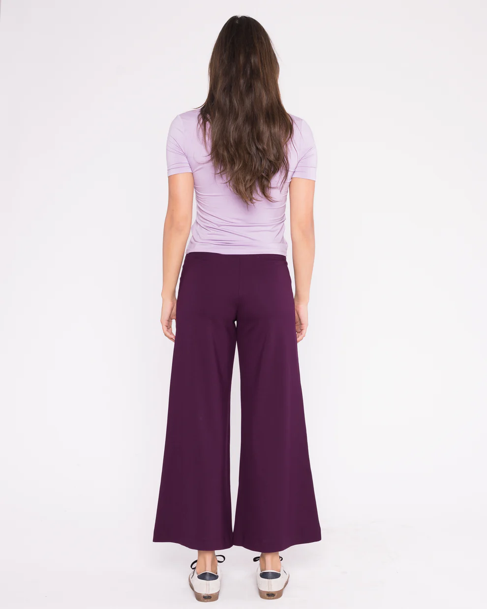 Plum Ponte Knit Wide Leg Pant: Cropped