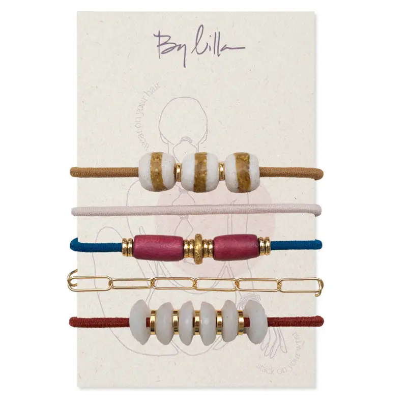 This 5-pack set, Speakeasy, features bracelets and hair ties in rich fall tones, accented with elegant gold details and natural wood embellishments. Included is a stylish gold paperclip bracelet that perfectly complements the collection, offering versatile wear for both casual and refined looks. Crafted to add warmth and sophistication, this set is ideal for enhancing your seasonal accessory rotation.