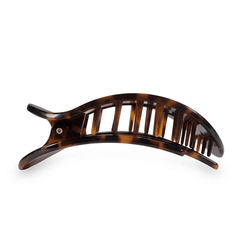 Lay flat and relax with the new TELETIES Tortoise Large Flat Round Hair Clip. This hair clip is designed to allow you to lay back flat, do yoga, or sit comfortably in a seat with a headrest, and it is made with the same material that is nearly unbreakable.