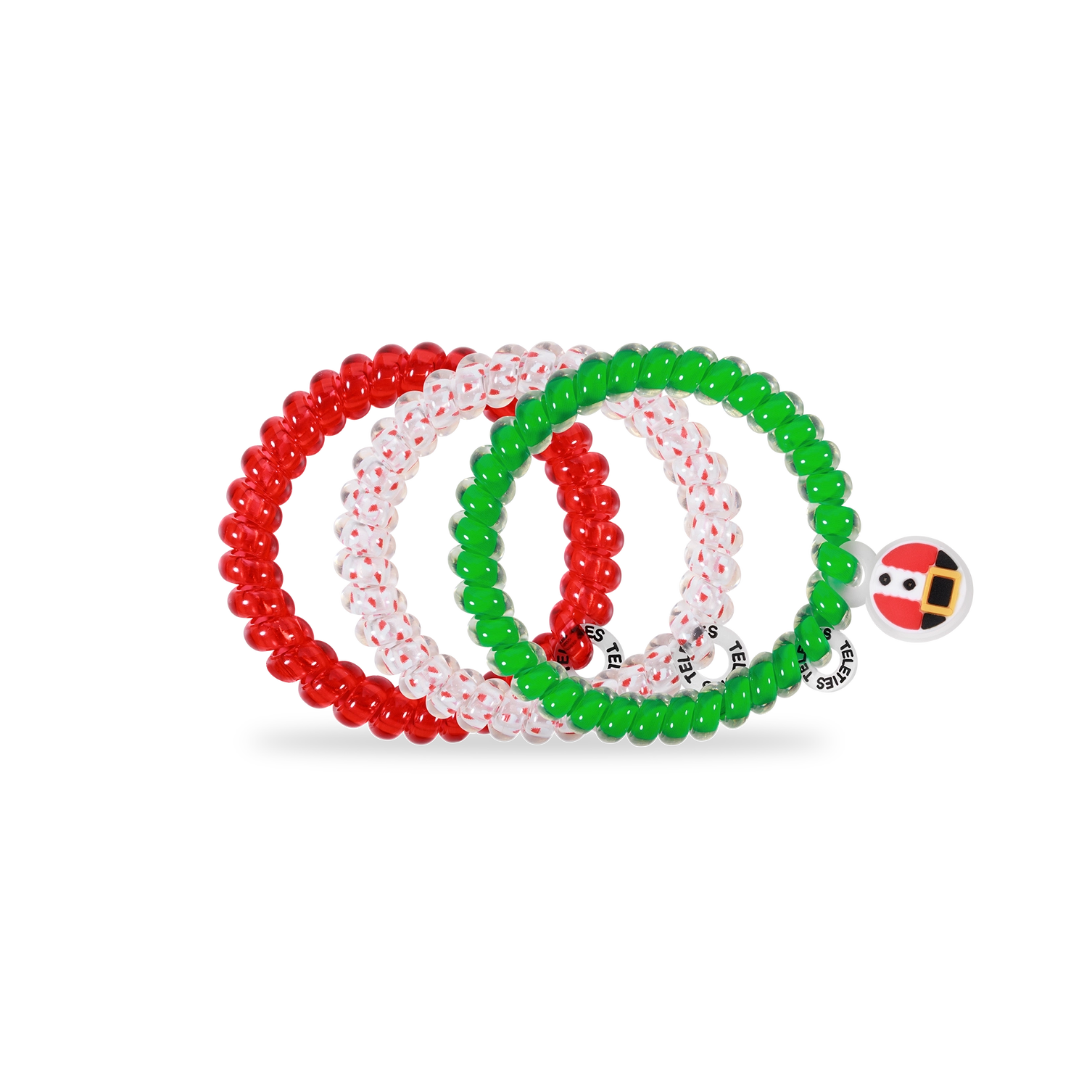Secret Santa Small Hair Ties in Red, Green, and Clear offer a strong grip without damage, doubling as a chic wrist accessory when not in use. Your new favorite hair essentials all year round. Strong grip, no rip design for all-day hold Doubles as a stylish bracelet Durable and waterproof for all occasions Gentle on hair—prevents breakage, headaches, and creases Sold in packs of three.
